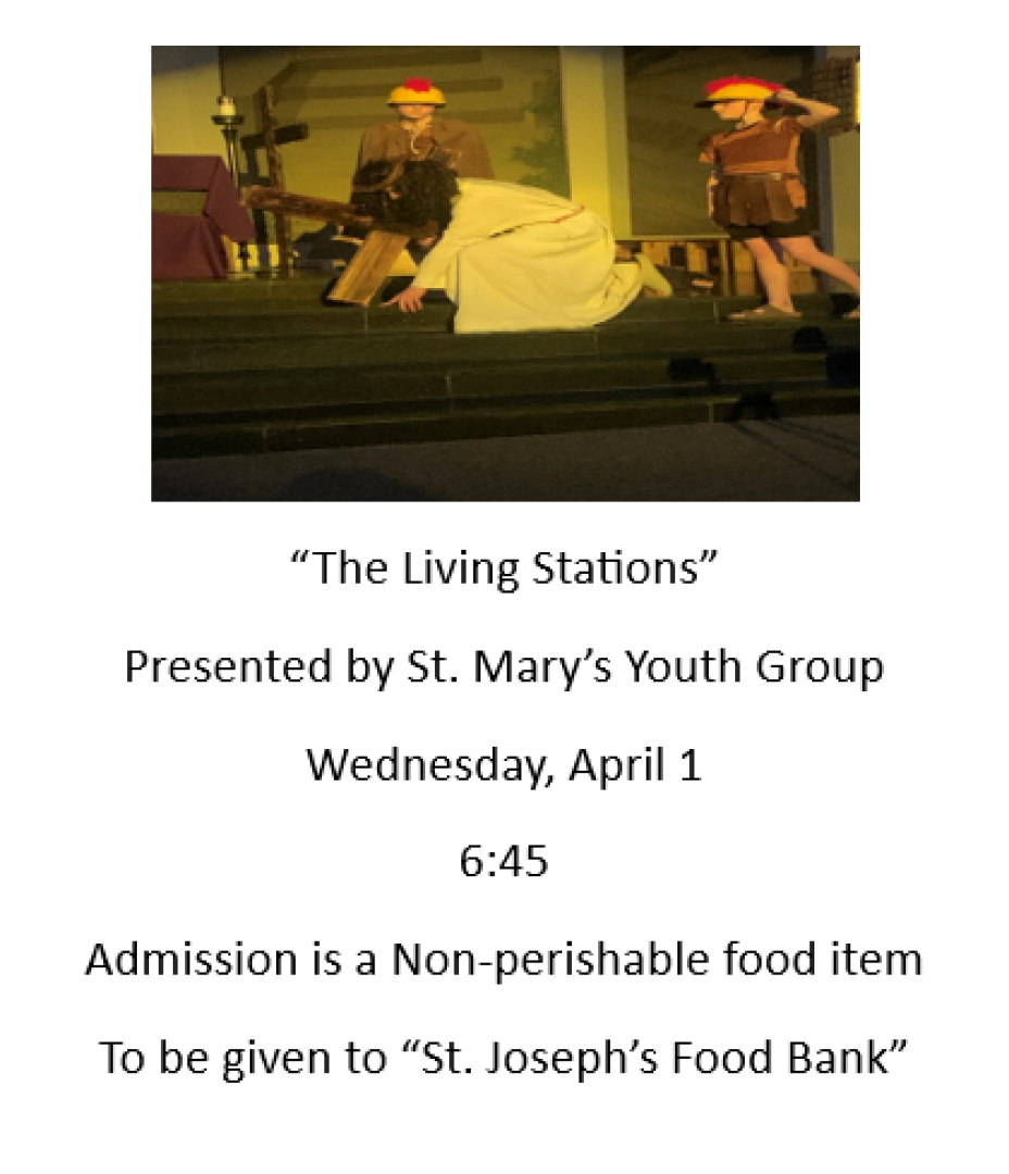 *** In addition to the regular reconciliation times at St. Mary's, Father Gross will hear confessions on Holy Thursday (April 2nd) and Good Friday (April 3rd) - 5:30-6:50 PM.